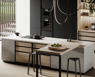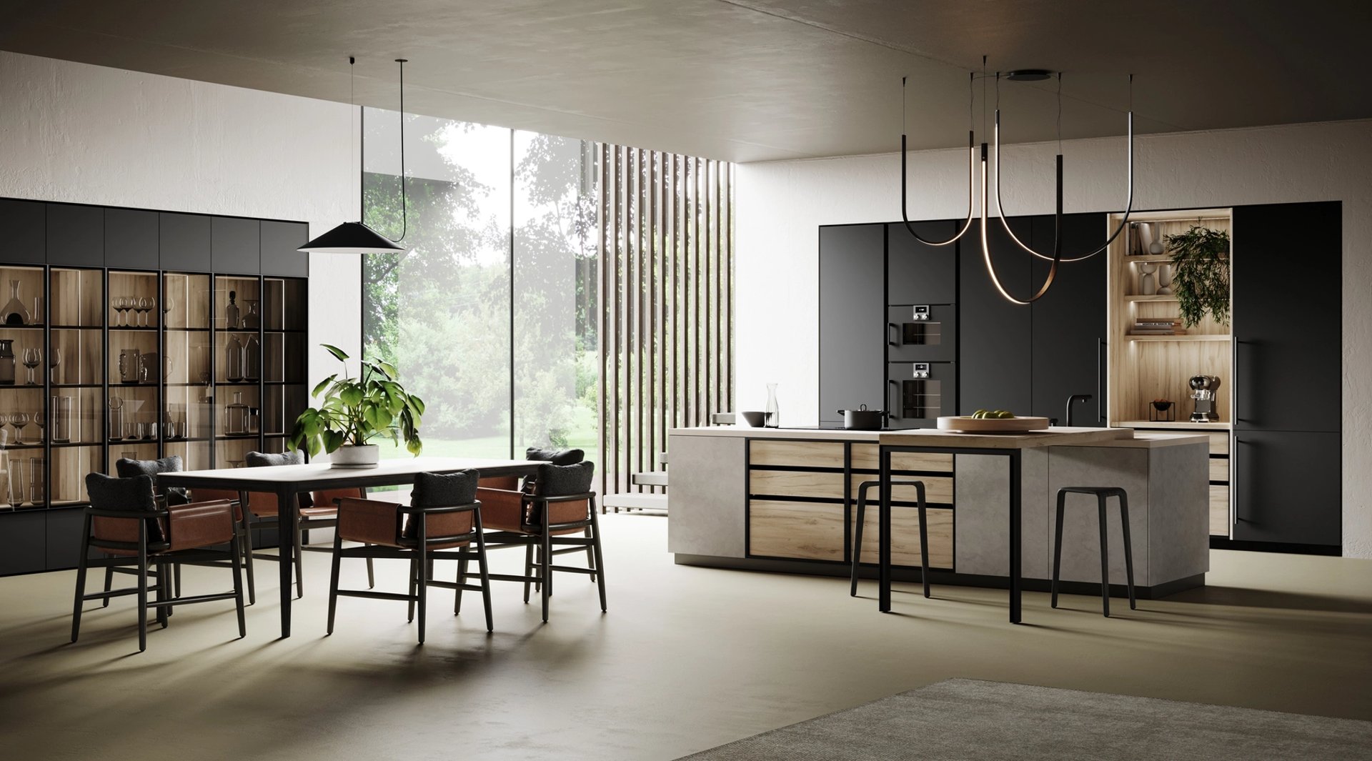 Bilaminato Opaco Beton Giove + Laminato PET Opaco Nero Onice + Bilaminato Legno Rovere Scandy