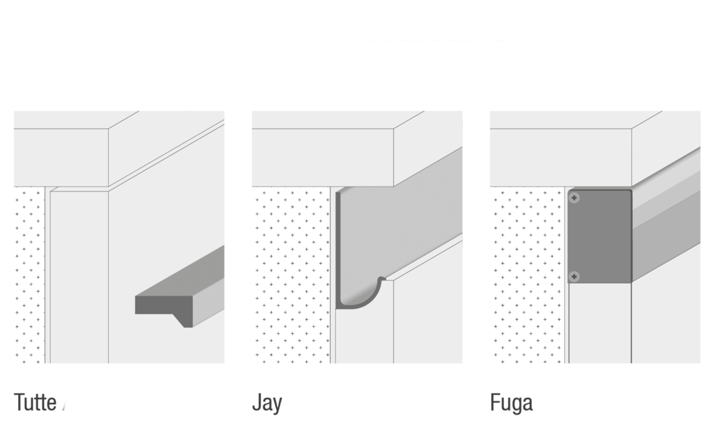 Porte réalisée avec un panneau en MDF à faible émission de formaldéhyde (classe E1), revêtue à l'avant d'une feuille PET et à l'arrière d'un bilaminato en teinte assortie. Bordure ABS en teinte assortie.